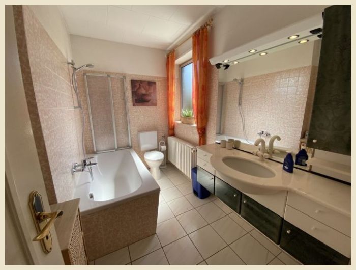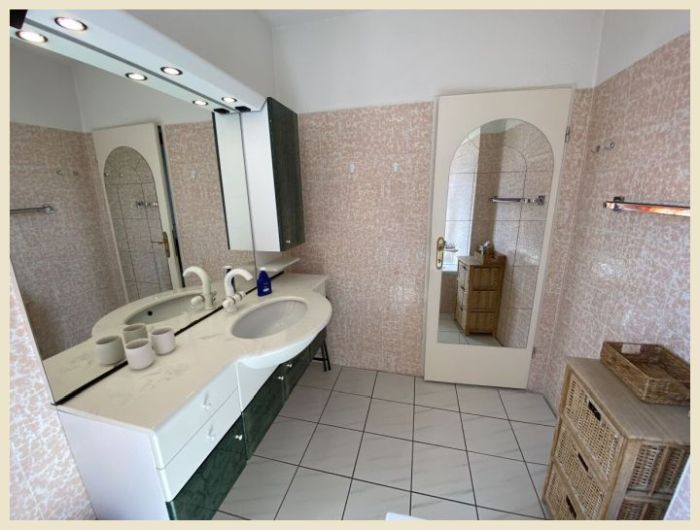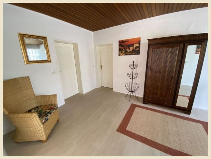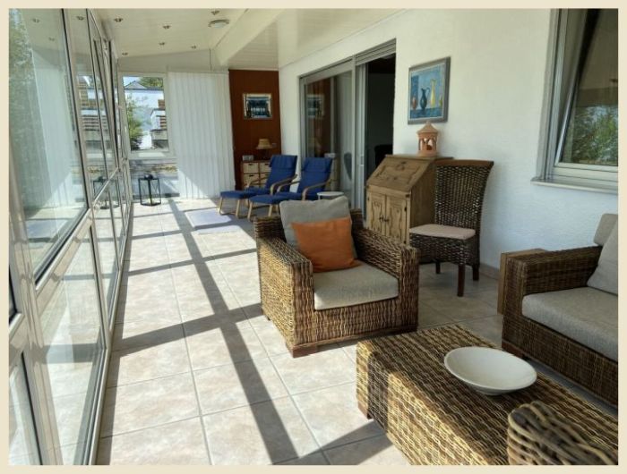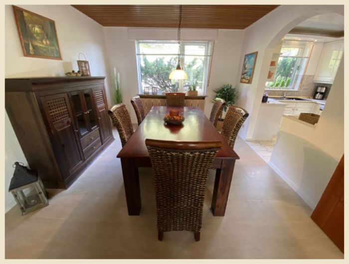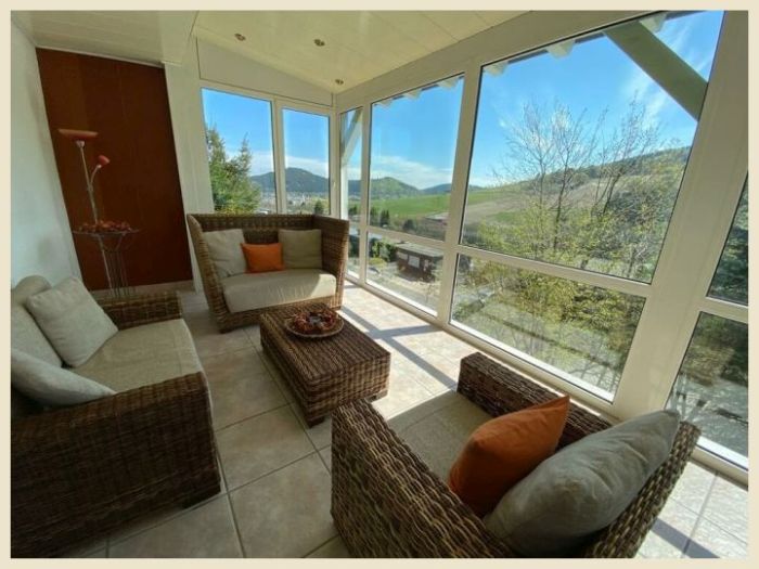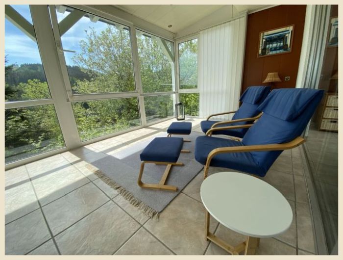 Wintergarten mit Panoramablick ![]() ![]() ![]() Große Couch mit Smart-TV ![]() ![]() ![]() Großer Essbereich mit angrenzender Küche ![]() ![]() Eingangsbereich mit Garderobe Badezimmer im oberen Bereich Badezimmer im unteren Bereich Schlaf- und Aufenthaltsbereiche unten Pool und Sauna |